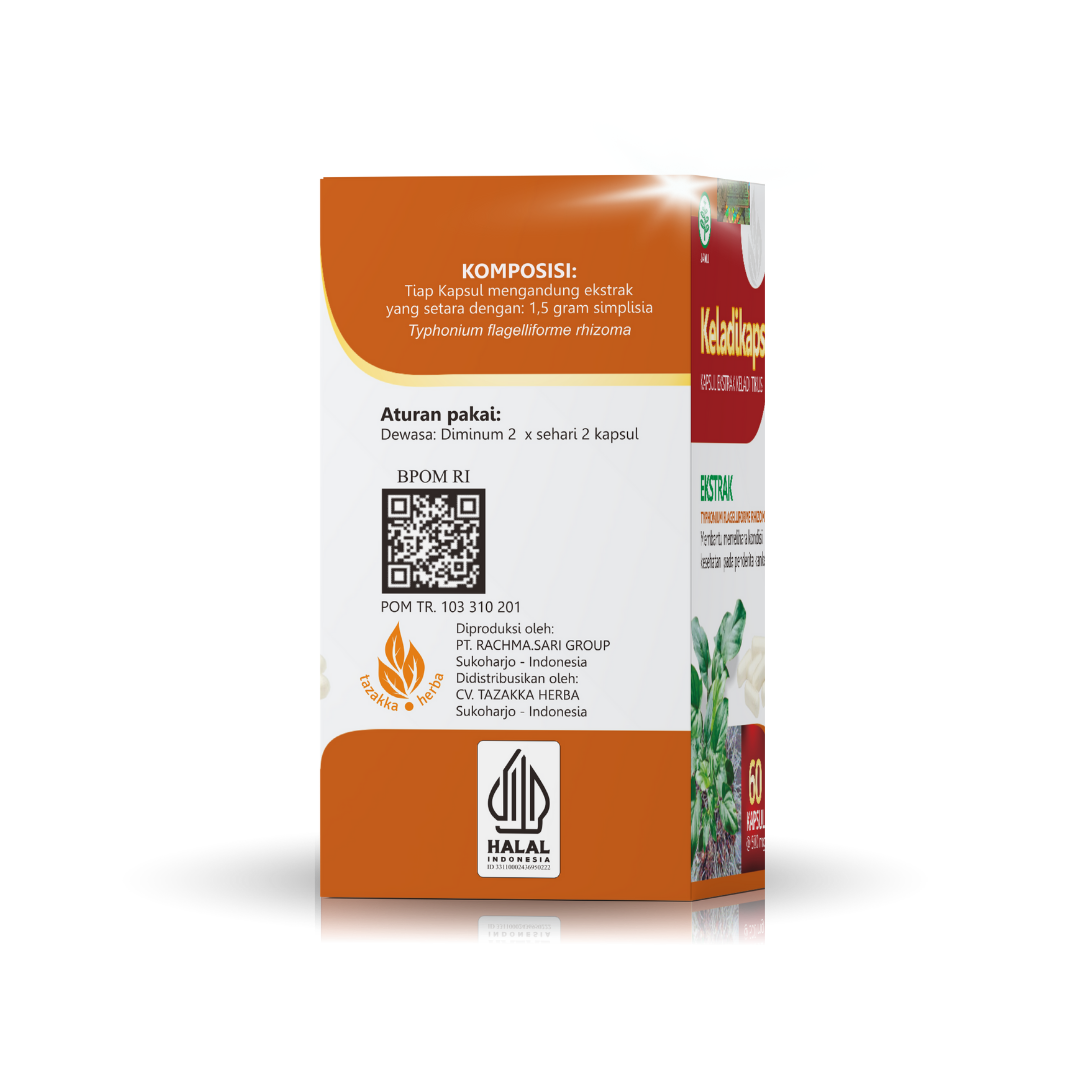KELADIKAPS Ekstrak Herbal Keladi Tikus Tazakka adalah kapsul herbal alami yang diformulasikan dari tanaman Keladi Tikus (Typhonium flagelliforme).